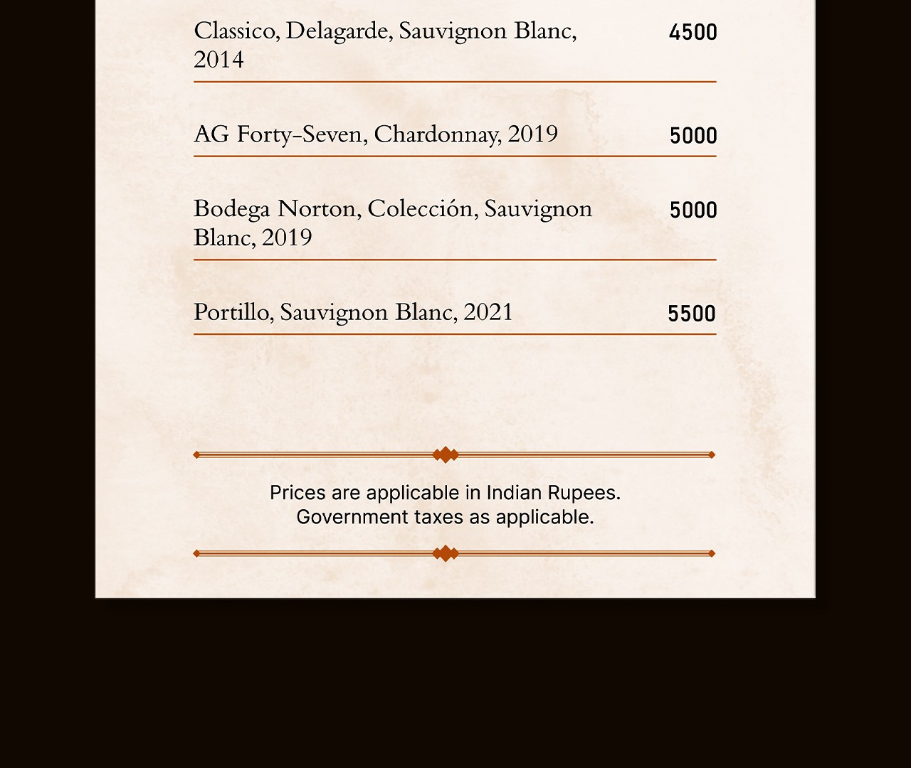 A scalable, modular menu system built for one of New Delhi's most prestigious luxury properties, designed to handle a large, continuously evolving wine collection across multiple restaurants without compromising visual quality.