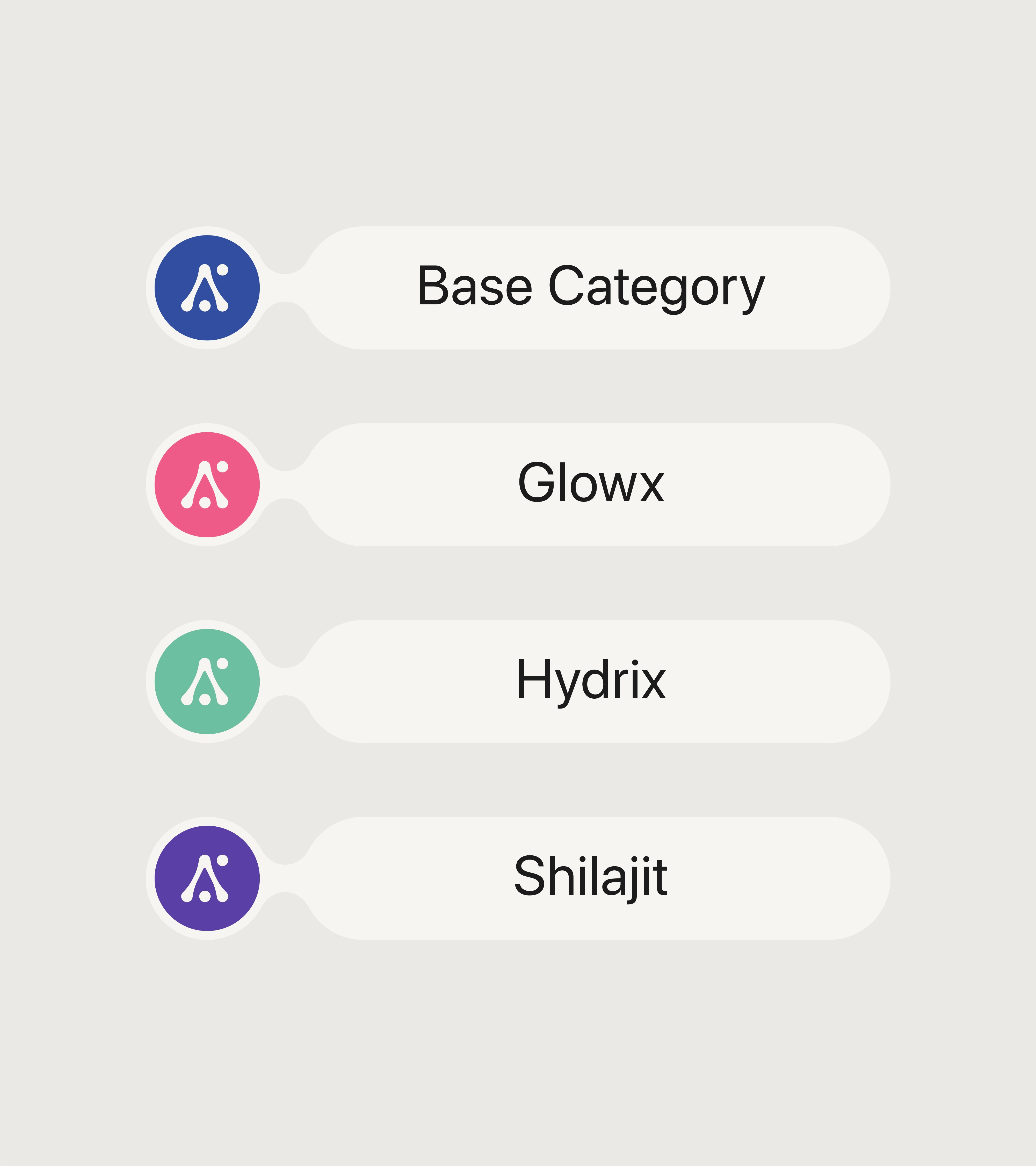 The base is neutral and deliberately so. Where most wellness brands use colour to evoke mood, abundance or vitality, Alchemix uses it as a functional system. Colour enters only where it earns its place, as a quiet marker that separates product lines and guides the consumer with clarity. The restraint is the statement. A palette that organises rather than performs, built not for decoration but for precision.