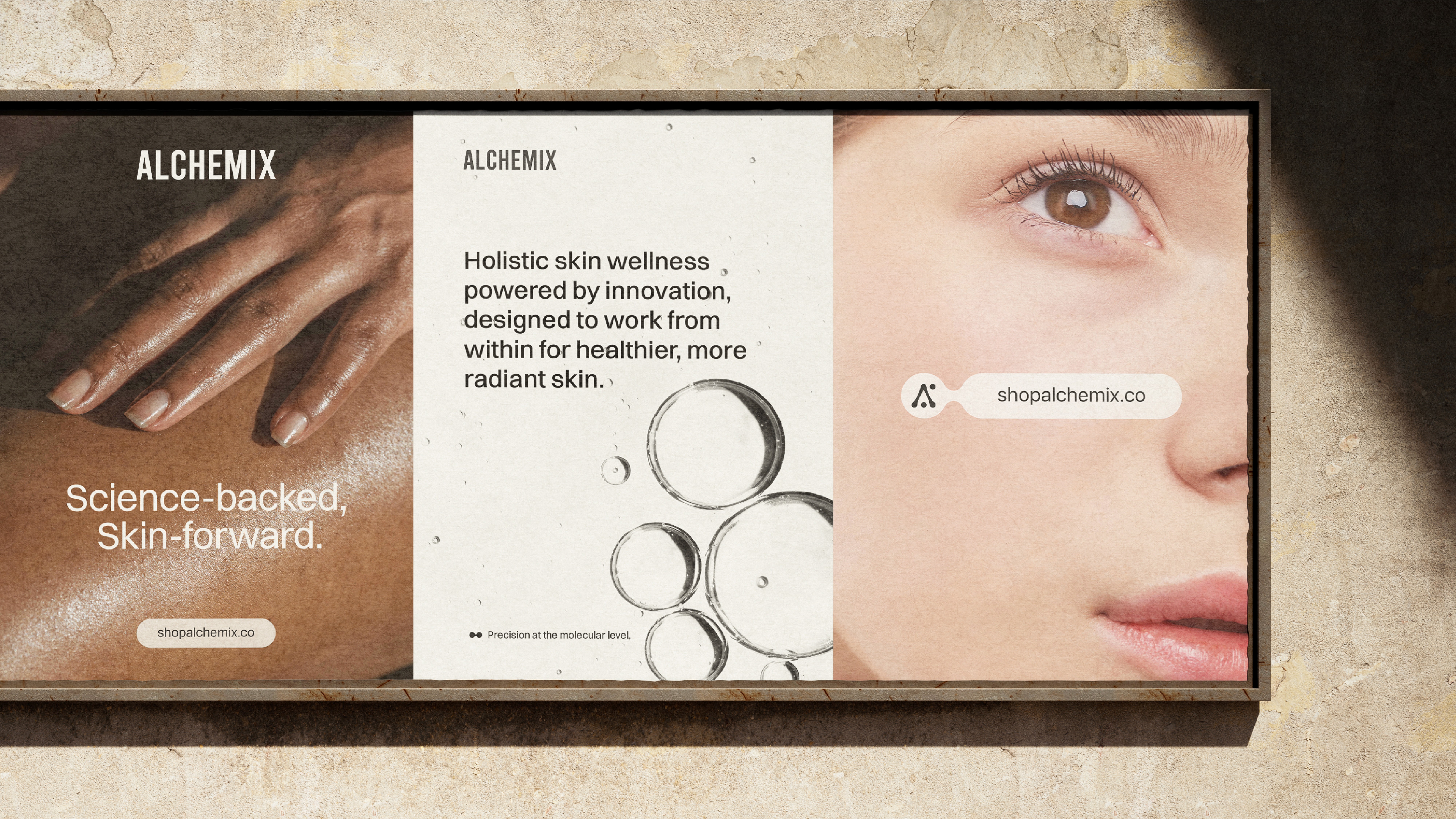 Alchemix is not about surface solutions. It never was. Every decision made across this identity, the mark, the palette, the type, the material of the pack, points toward the same truth. That holistic skin wellness powered by innovation begins not on the surface but from within. In a category that over-promises, Alchemix chose to be exact. That exactness is the brand.